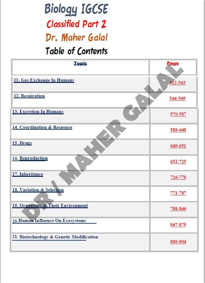 Cambridge Pre-IG Biology (0610/0970) Classified With M.S Maher Galal